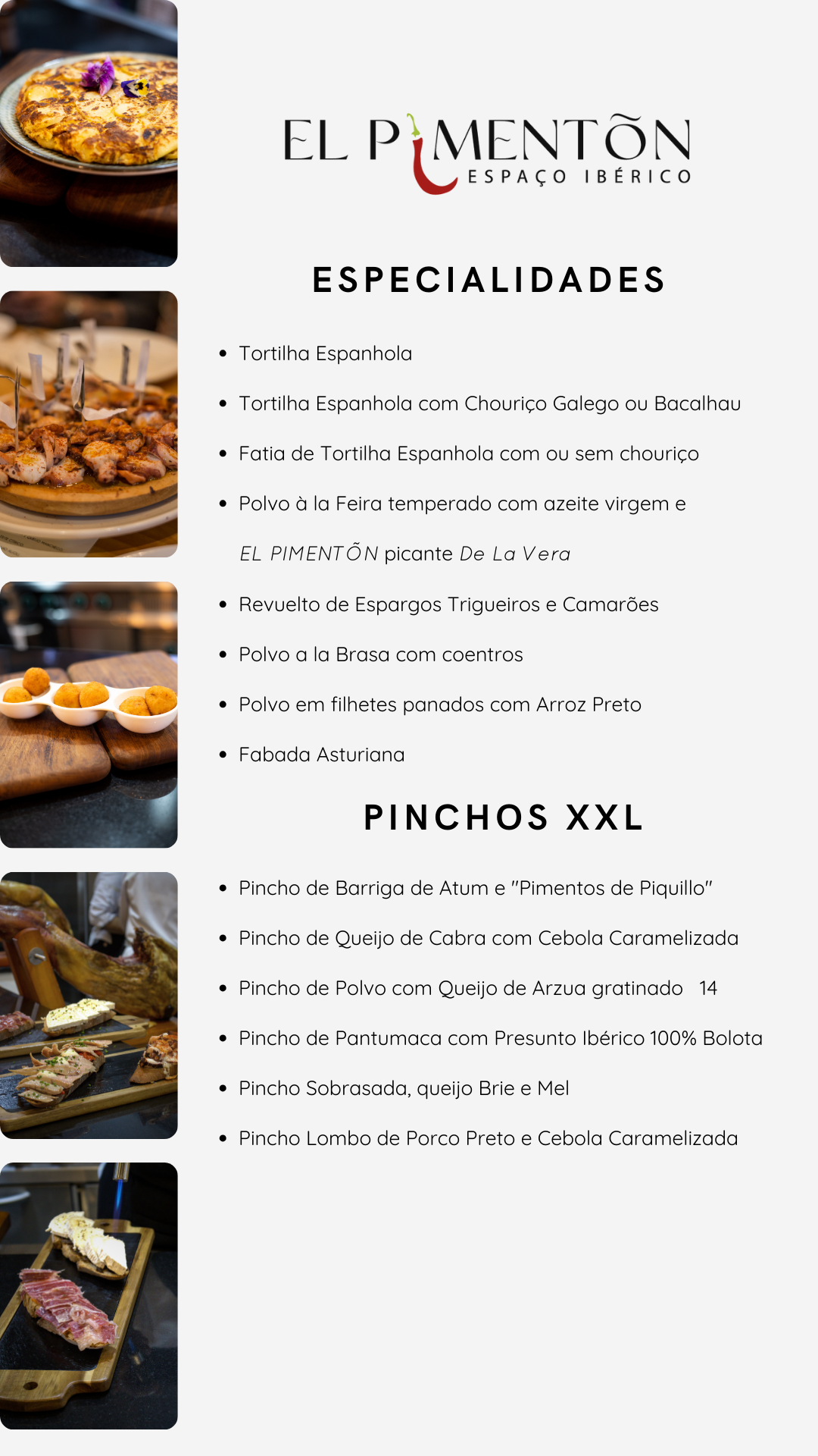 O Restaurante El Pimentõn é o seu espaço para desfrutar de comida espanhola. Deixe-se seduzir pelos sabores e venha experimentar uma Tortilla, um Presunto Ibérico ou deleitar-se com mariscos variados cozinhados no momento!